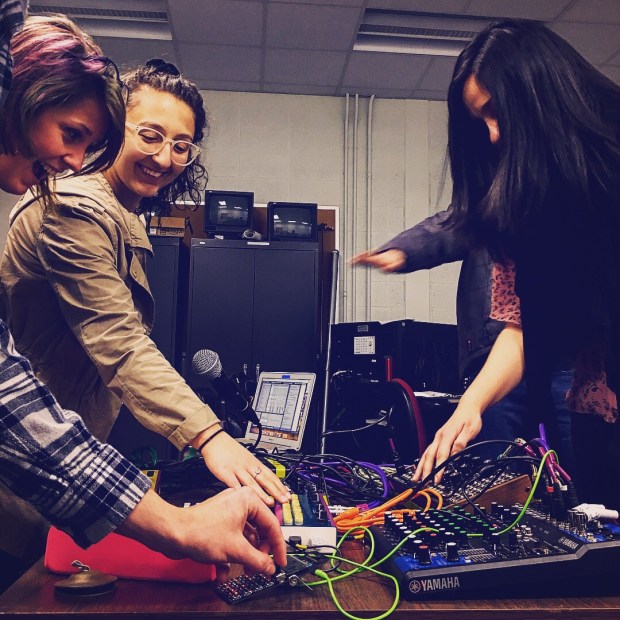 Art majors at the University of Rhode Island collaborating on an improvisatory piece with electronics.