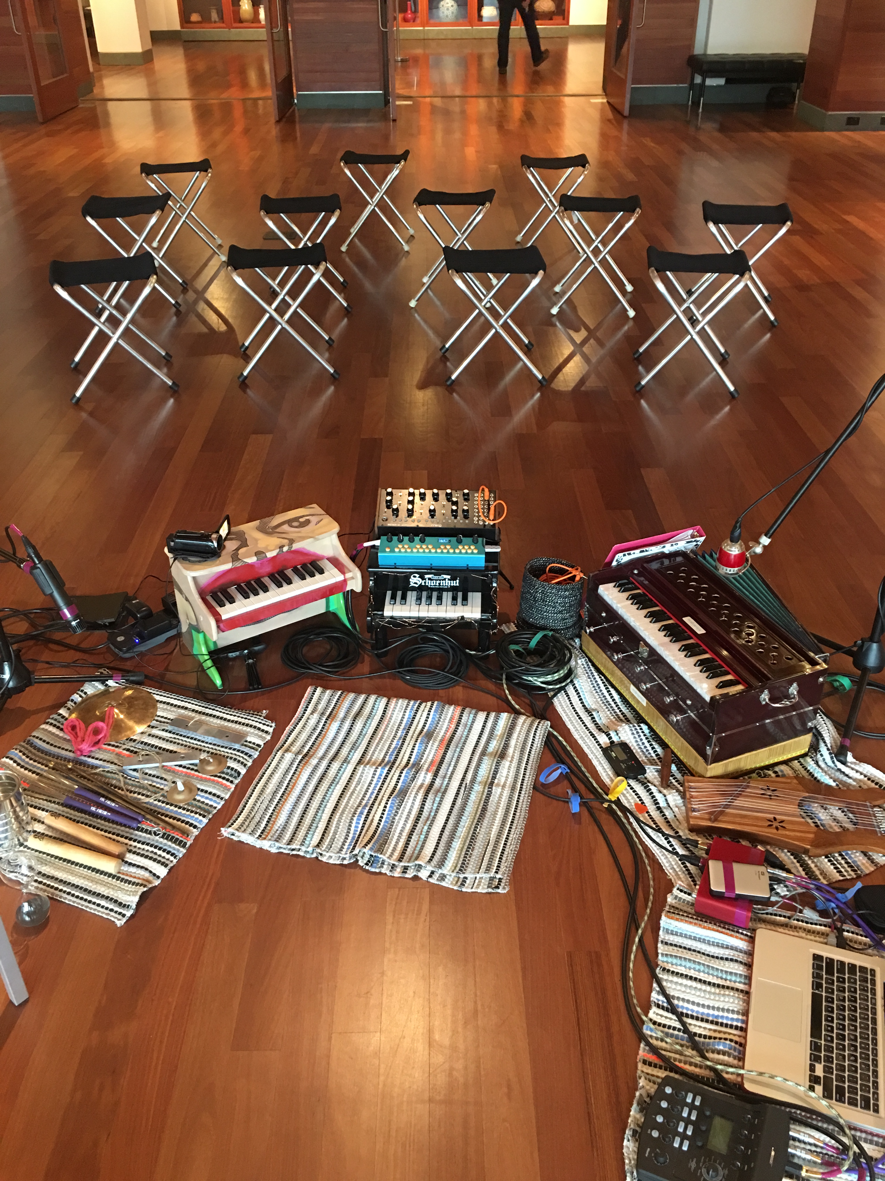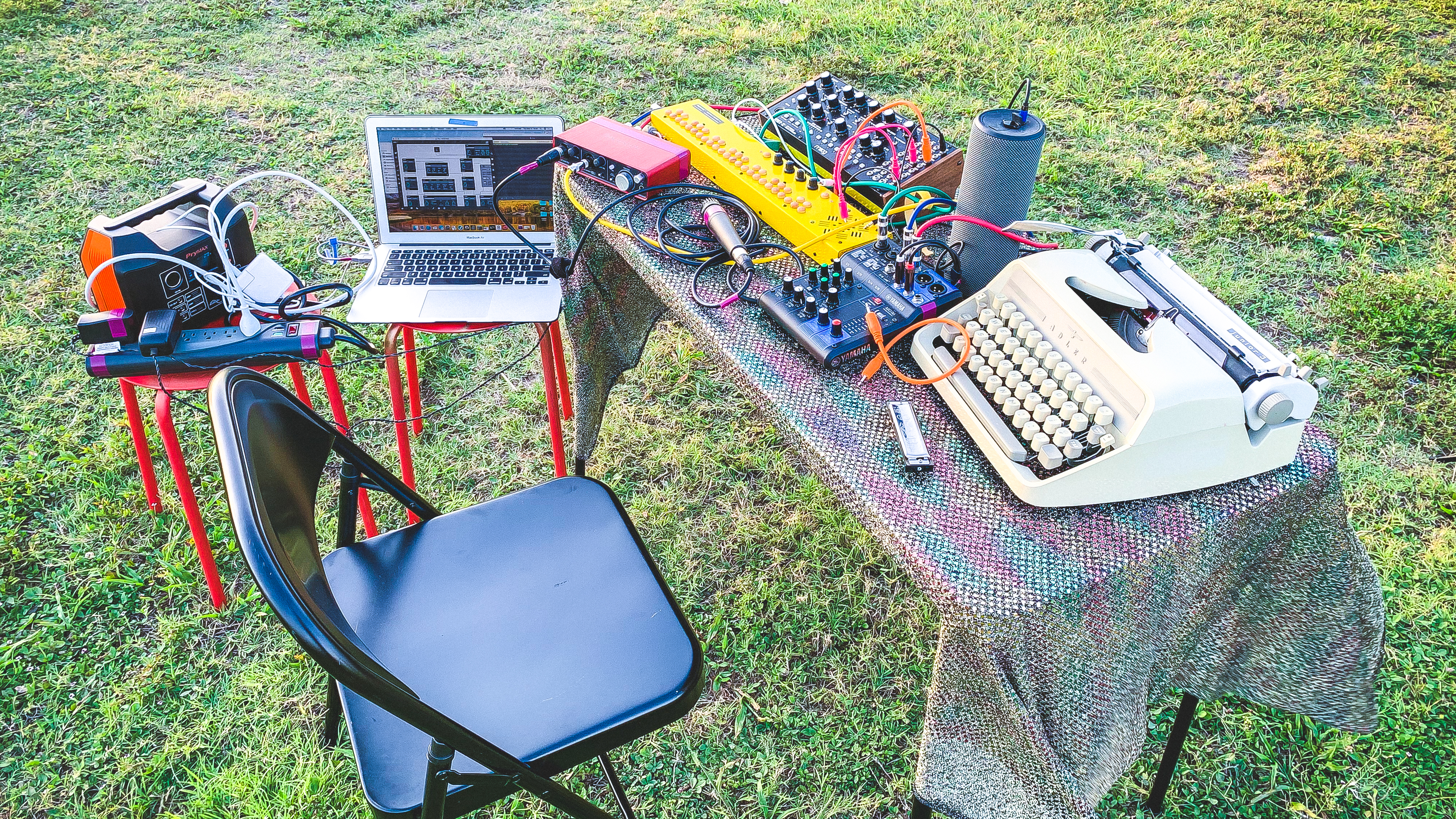 The Spaceship that Elizabeth uses often uses many semi-modular analogue synthesisers and found objects all of which introduce levels of variability and sometimes chaotic unknowns, within the spectrum of experimentation, embracing these as a reflection of organic life that doesn’t robotically repeat identical controlled results. Increasingly, as notation systems and MIDI realisations have allowed composers to indulge in the illusion of total control, there is less of a tolerance and embrace for the beauty of uncontrolled and happenstance… system instruments and in particular The Spaceship present composing artists a chance to engage with another way of existing in the world of human initiated sonic activity.